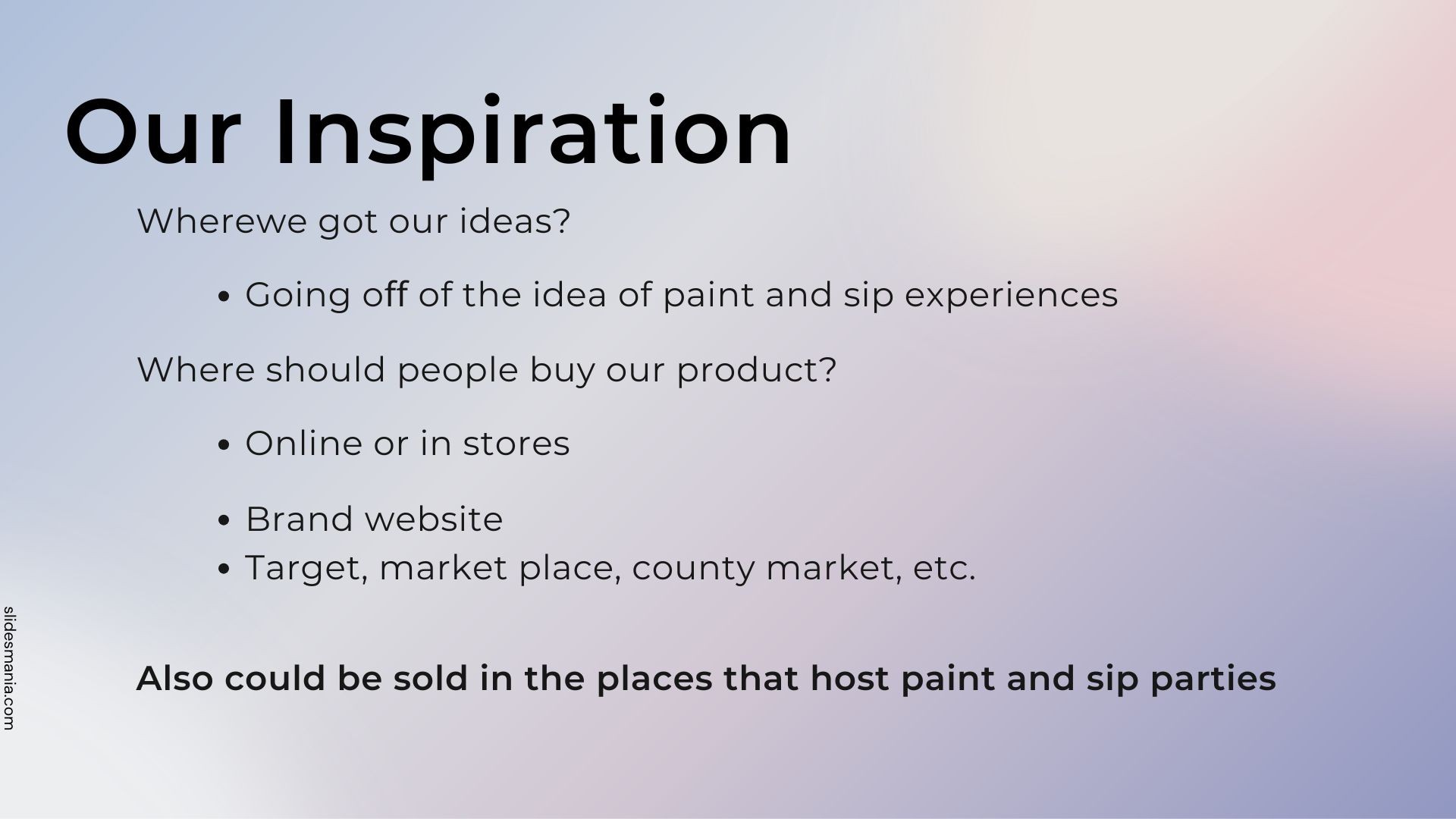 My team's theme centers on applied art, and we’re creating Muse: a non-alcoholic sparkling cocktail brand built around paint-and-sip events and creative expression. The goal is to blend art, experience, and accessibility into a brand that encourages people to slow down, experiment, and find inspiration in the process.